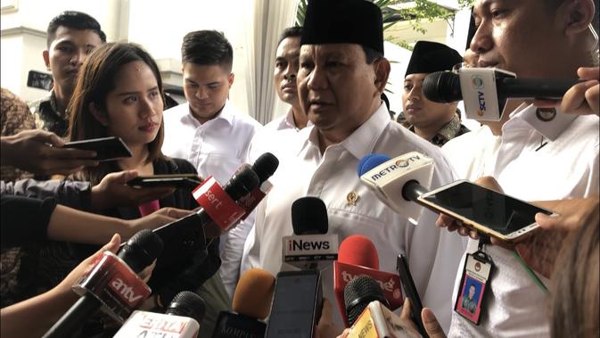 Menteri Pertahanan Prabowo Subianto bertemu dengan Menko Polhukam Mahfud Md. Adapun pertemuan tersebut berlangsung tak lama.