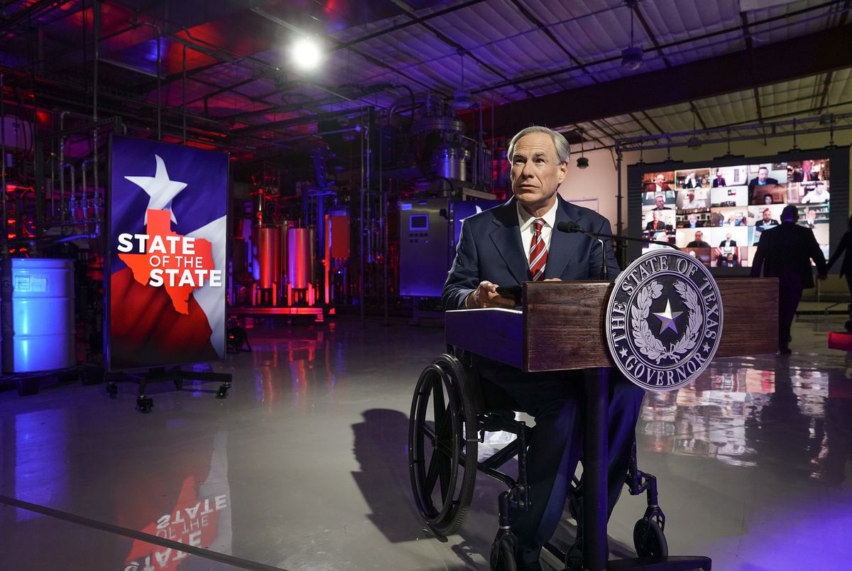 Abbott gave the address from Visionary Fiber Technologies in Lockhart, eschewing the traditional setting of a joint legislative session inside the House chamber as lawmakers continue to worry about gathering en masse during the pandemic.